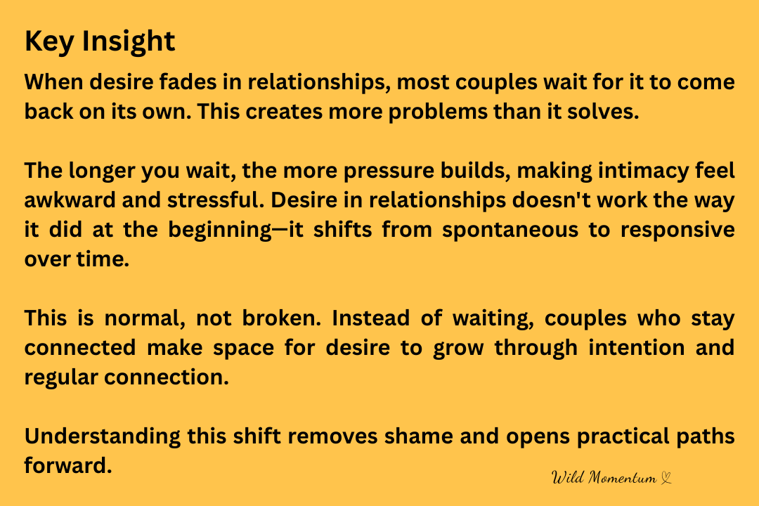 Here’s the shift that changes everything: desire in relationships works differently after the early stage. The change from spontaneous to responsive desire isn’t a sign of failure. It’s how attraction naturally evolves when you build a life with someone.