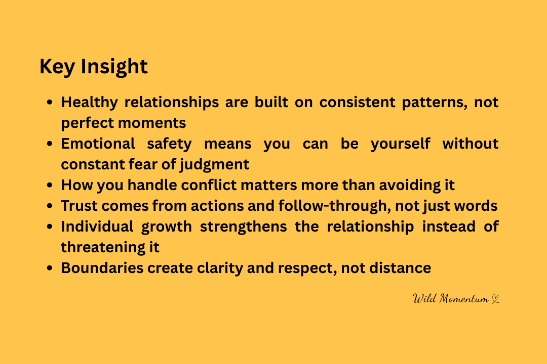 This isn’t something you pass or fail. It’s a way to notice what’s working and what might need some care. If you see most of these patterns in your relationship, things are likely going well. If not, that’s helpful to know too.